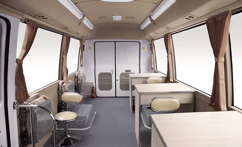 考斯特医疗车由考斯特系列产品开发而来,外形典雅大方,内饰做工精致,整车电泳,承载式车身,同时兼顾燃油经济性与整车安全。精密的底盘调校,结合电子制动控制系统(EBS)等领先的安全配置,令驾驭更从容稳健,操控自如。