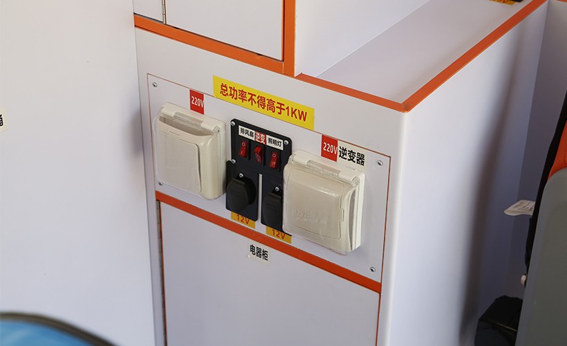 2、220V正弦逆变电源系统:输出功率600W,设有独立开关、接地漏电保护装置以及过载保护装置。