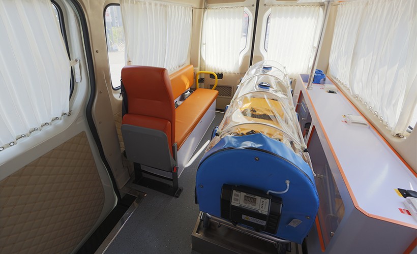 7、配备负压系统,以保障医疗舱内空气的换气效率,在救治和转运传染病等特殊疾病时可以最大限度地减少医务人员交叉感染的机率。