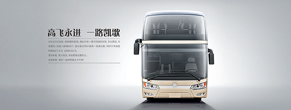 XML6102J凯歌系列10米一层半客车是厦门金旅2013年布局旅游客运市场的一款战略重点产品,共有柴油版和燃气版两种动力选择。作为一款既满足旅游客运需求又低油耗的客车车型,其高收益的市场研发定位,将使其成为10米客运车型性价比的新标杆,成为客运企业提升运营效益的首选利器。