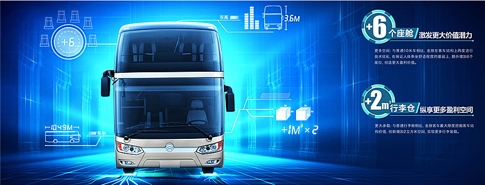 厦门金旅发布了其最新开发的10米凯歌系列一层半客车,通过结构设计的巧思妙想,用10.5米的车身达到了12米级普通座位车的载客量,并且整车的高度、通过性、乘客上下车的便利性等方面都实现了突破性的进展。相比同类型的产品,在行李厢容积更大、乘客区空间更优的情况下,整车高度降低了近20厘米,只有3.6米的高度,提高了车辆盈利能力同时还保证了车辆的机动性。