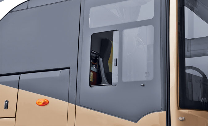 这款车的驾驶区空调采用的是独立的系统与控制,驾驶员可以独立的控制驾驶区域的温度。现在很多同类车型只是将乘客区的风道引入驾驶区或者用前风挡的除雾冷风来制冷,效果都不理想。这样的设计虽然成本上高了一点,但真正做到了对驾驶员的关爱。驾驶员的工作环境改善了,车辆的安全就能得到保证,看起来是个空调的小事,但事关运营安全,就是大事。