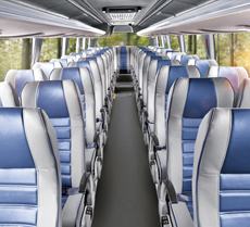 XML6102采用了先进的全场新风系统,换气流场更合理,换气效率更高,6分钟即可将车内空气换新一次,让乘客的一路旅程清新舒爽。乘客椅增加了对人体的贴合性设计,并且拥有左右横移和后背可调的功能。而在NVH的静音设计方面,针对不同的音频特性,设计了不同的降噪结构,并大量应用了减震环保隔音材料,让乘客在温馨静谧的环境中享受舒适愉快的旅途。