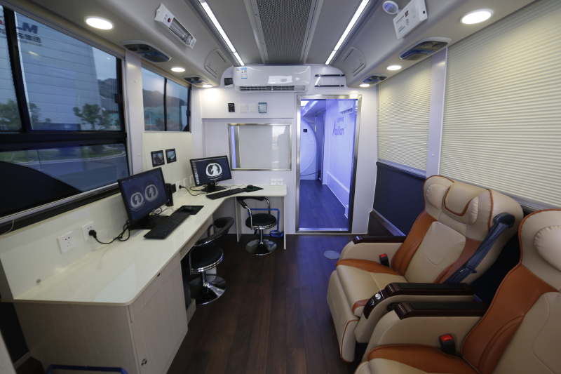 目前,CT检查已经成为医学诊断不可或缺的重要手段。疫情爆发后,机动灵活的CT医疗车,突显了可独立可隔室检查的优势,成为了新冠快速诊断的有效辅助装备!作为一直倡导“健康移动空间”理念的金旅客车,依托在健康医疗领域丰富的生产制造经验,金旅已开发涵盖5-13.2米各个长度段的医疗体检车,集常规体检及应急医疗救援等功能于一身,突破了现有检测技术对人员和场所的限制,缩短检测用时,提升便捷程度,推动诊断前移下移,真正实现了疑似患者的快速诊断和密切接触人群的现场筛查。在金旅看来,新一代医疗体检车的研发不仅能够帮助应对当下的新冠肺炎疫情,对于未来抗击其他流行性病毒疫情也会起到支持作用。