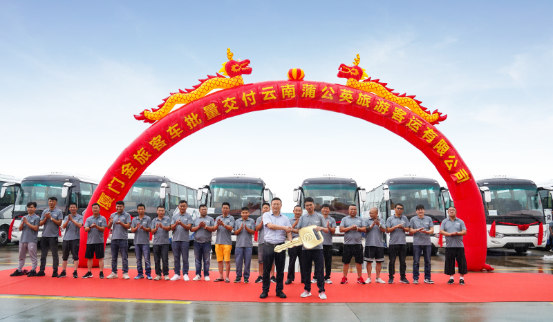 2023年6月15日,30辆金旅锦程在厦门交付云南蒲公英旅游客运有限公司(以下简称“蒲公英”“)。蒲公英总经理合东声亲自到现场接车,他说:“这是我第五次到厦门接车,也是最满意的一次!这批车辆做工精细,细节考究,超出我的预期。这批车辆回去后,绝对在云南旅游市场是数一数二的。”