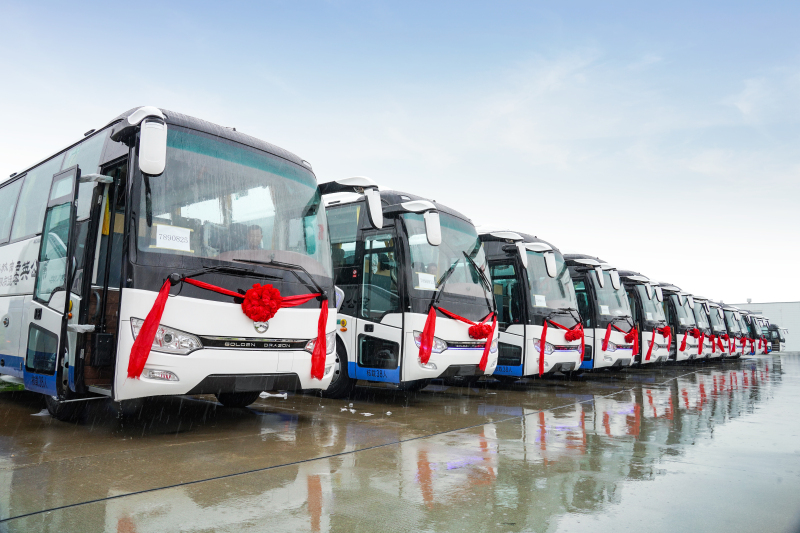 此次交付的金旅锦程是一款备受旅游市场青睐的车型。该车型针对旅游市场高端化、品质化的最新出行需求,应用全新科技和领先工艺,流线型外观设计,造型精致大气,轿车化新型仪表台,彩色智能大屏,无盲区后视镜,操作便捷智能。内饰风格采用豪华定制,宽体车身带来更宽敞的车内空间,每一处细节都精益求精,软包缝线工艺,豪华大商务座椅,菱形格纹软包豪华中顶, LED氛围灯,自动温控系统、车载饮水机、影音娱乐系统等专属配备,营造更高端舒适的出行体验。