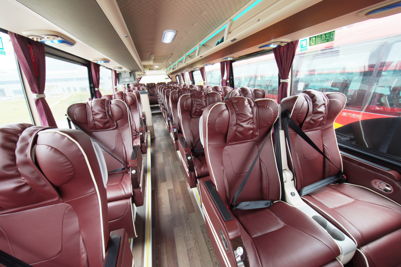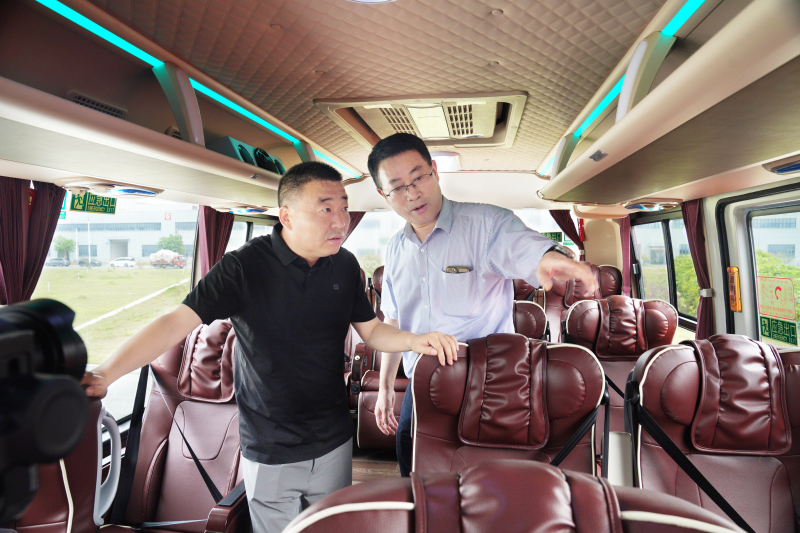 作为金旅客车的旗舰车型,XML6122 凯歌系列以航空级 “2+1” 商务座椅布局、豪华内饰及智能化配置,成为旅游客运市场的焦点。记者在交付现场看到,车内采用顶级缝线软包工艺,宽大舒适的座椅搭配充裕腿部空间,辅以独立温控系统、空气净化装置及车载饮水机,为乘客营造媲美头等舱的乘坐体验。