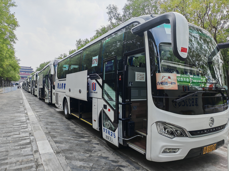 除了过硬的产品实力,金旅客车成熟完善的服务保障体系,更是此次任务圆满完成的重要保障。自接到保障任务起,金旅客车迅速成立专项服务保障团队,整合服务资源,制定“前置检查、现场值守、应急响应”三位一体的保障方案。在活动前期,团队深入合作单位开展车辆全面排查,协助用户将车辆状态调整至最佳;活动期间,在阅兵村、集结地等关键区域设立服务站点,派驻专业技术人员24小时待命,同时组建机动应急小组,确保突发问题第一时间响应、高效处置。从多次演练到正式盛典,金旅客车服务团队以“反应敏捷、服务及时、保障有力”的专业表现,赢得了合作单位的高度认可。